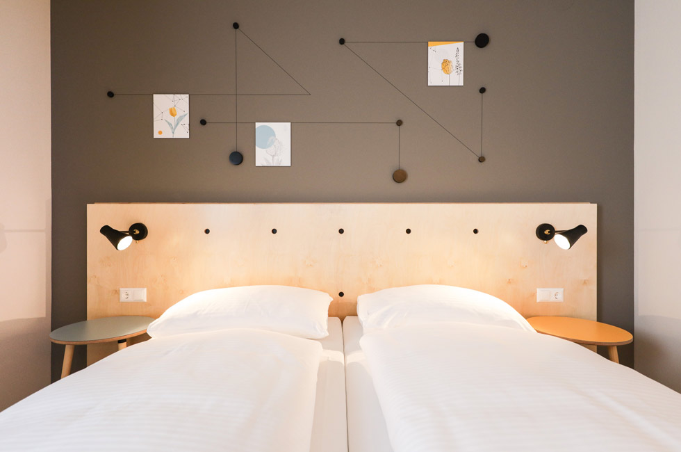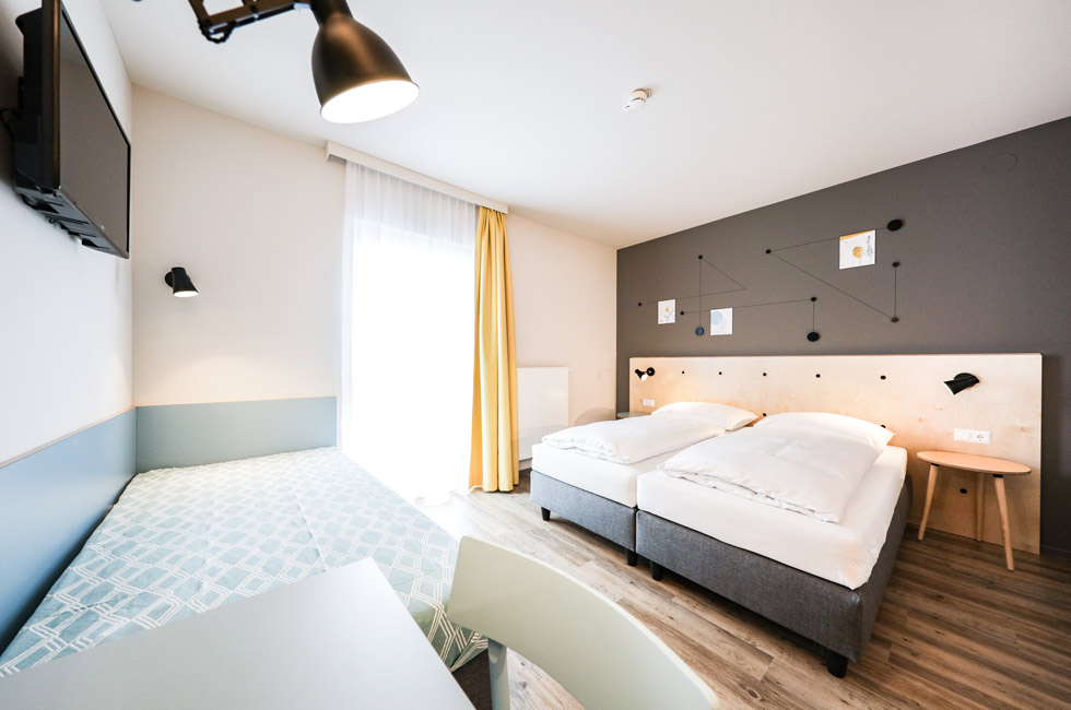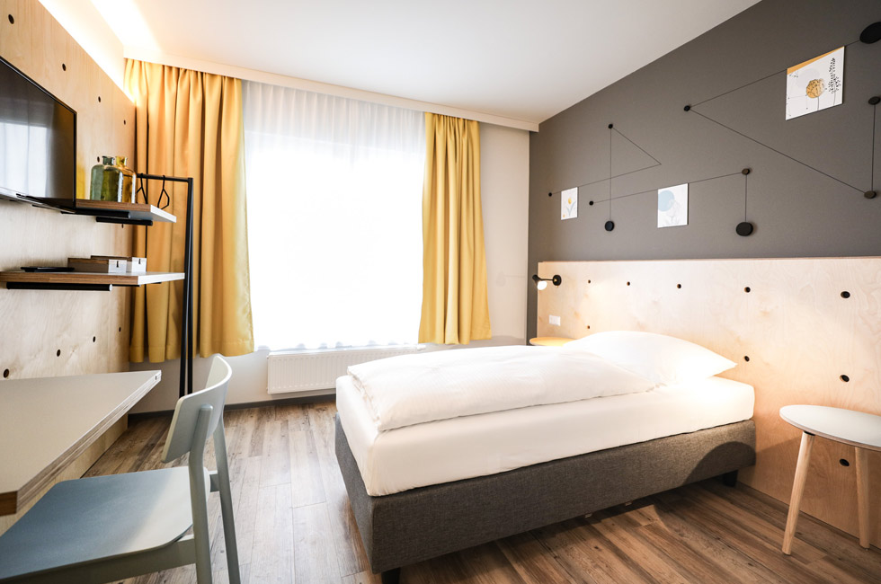 Das Interior Design stammt vom Tochterunternehmen Derenko. Frische helle Farben und moderne Ästhetik nach nordischem Vorbild, prägen das Erscheinungsbild. In den 29 Zimmern mit zeitlosem Designanspruch dürfen sich die Gäste des Hotel Tullnerfelds wohlfühlen. Je nach Belegungswunsch gibt es Zimmer mit 1 –3 gemütlichen Boxspringbetten.
