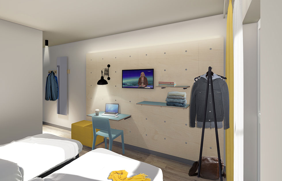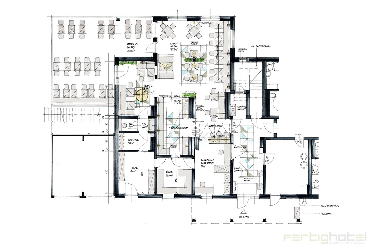 Smart-Budget Hotel mit 29 Zimmer und Frühstücksbereich.
