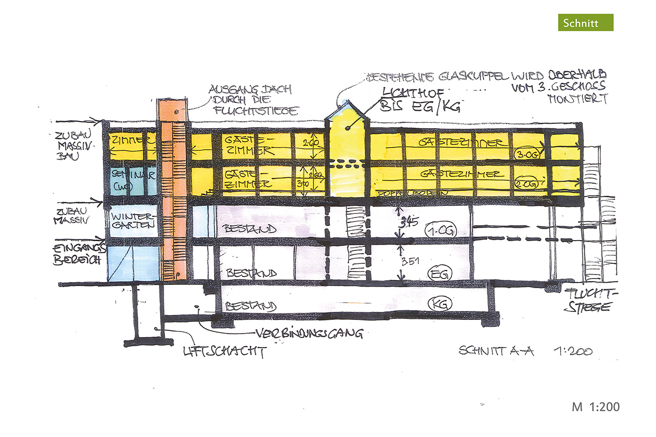 Grosserweiterung um 40 Zimmer, Seminarraum & Gastronomie.